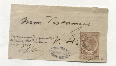 Poète, dramaturge, romancier, homme politique, Victor Hugo, mort le 22 mai 1885 des suites d’une pneumonie, a profondément marqué l’histoire du XIXe siècle par ses combats et par sa plume. Après son décès, son testament est déposé chez maître Cotelle, notaire à Paris. Il est désormais conservé au Minutier central des notaires de Paris, aux Archives nationales.